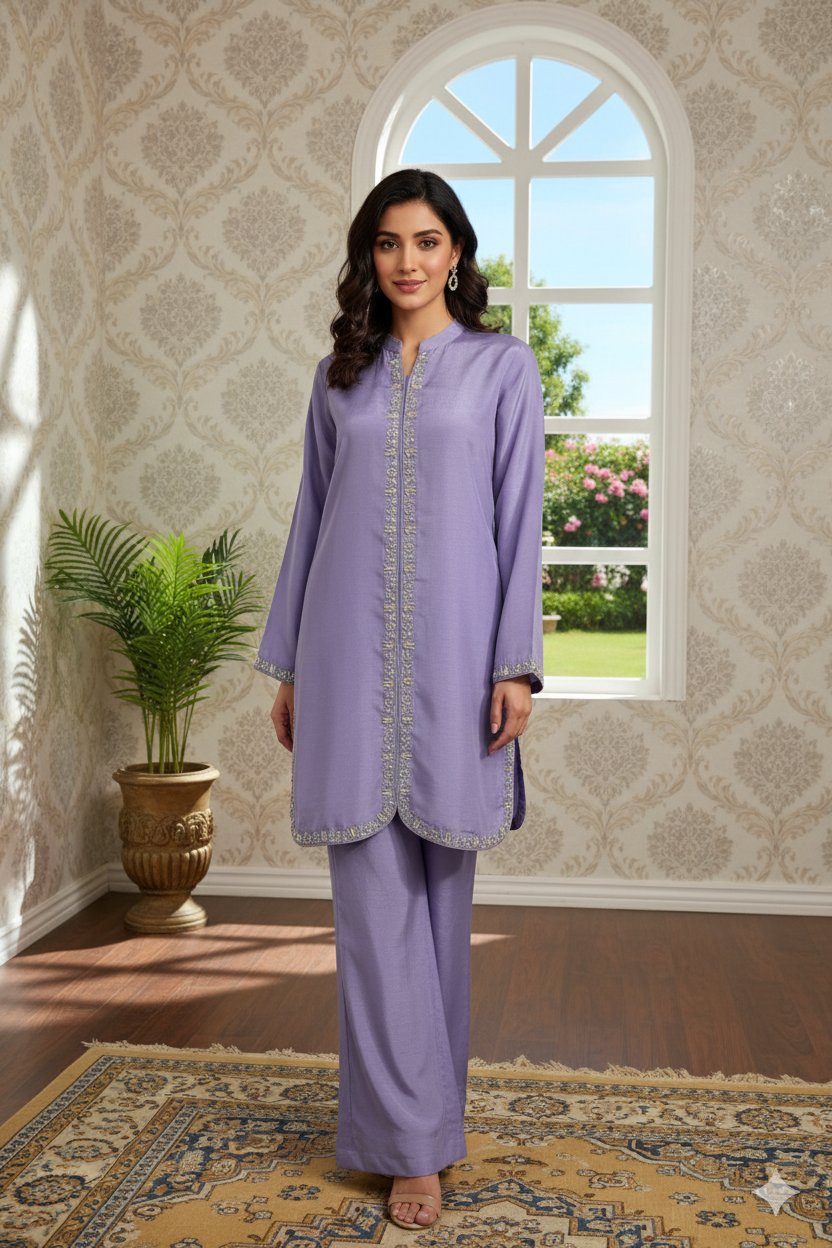 Radiate grace and charm in this stunning lavender set — a perfect fusion of elegance and comfort. Whether you’re celebrating Eid or attending a festive gathering, this look will have you standing out effortlessly!