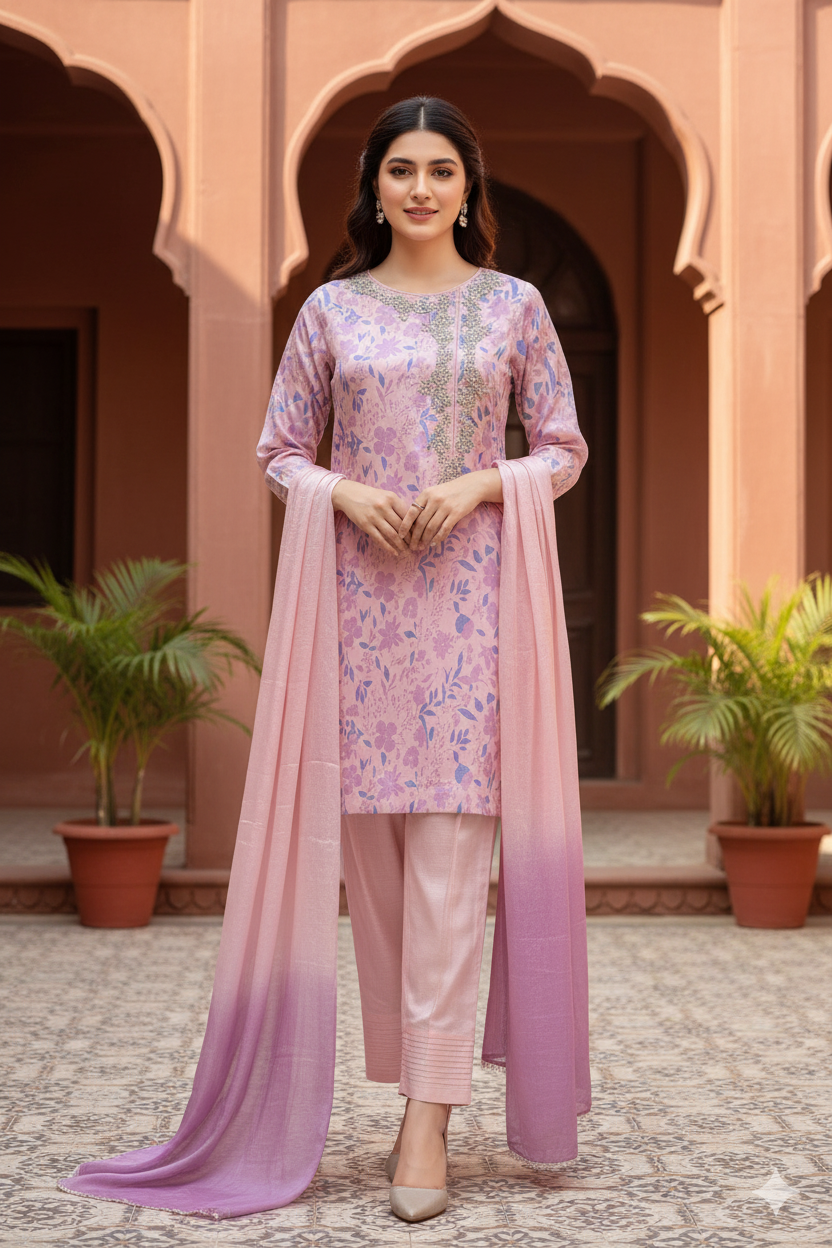 • Color: Blush Pink, complementing the ensemble with understated elegance.